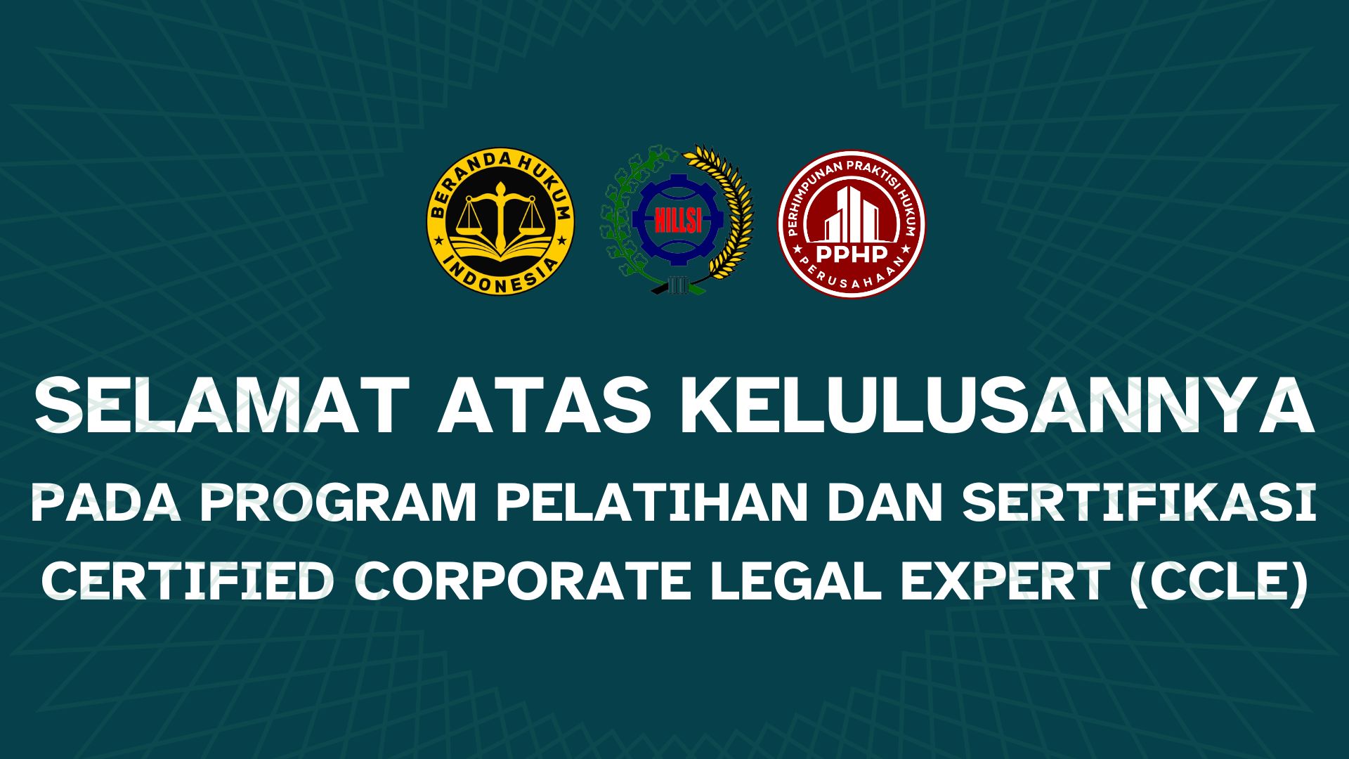 Terima kasih atas partisipasi, semangat belajar, dan dedikasi yang telah diberikan selama program berlangsung. Sampai bertemu kembali di program-program unggulan berikutnya dari Beranda Hukum Indonesia dan Perhimpunan Praktisi Hukum Perusahaan (PPHP).